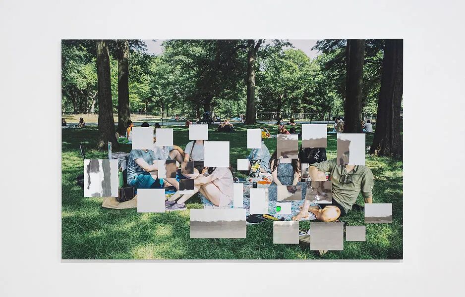 After the outbreak, people seem to be used to moving all kinds of social online to help us communicate with the world virtually through the screen. In Picnic on the grass, the people in the work are in the same time and space. However, the images of each person's face, hands, and objects close to them, which are essential for real interaction, are replaced by mirrors. Then it was shown in Picnic on zoom — these fragmented and self-contained plane spaces reflect the metaphor of online video communication we are experiencing every day.