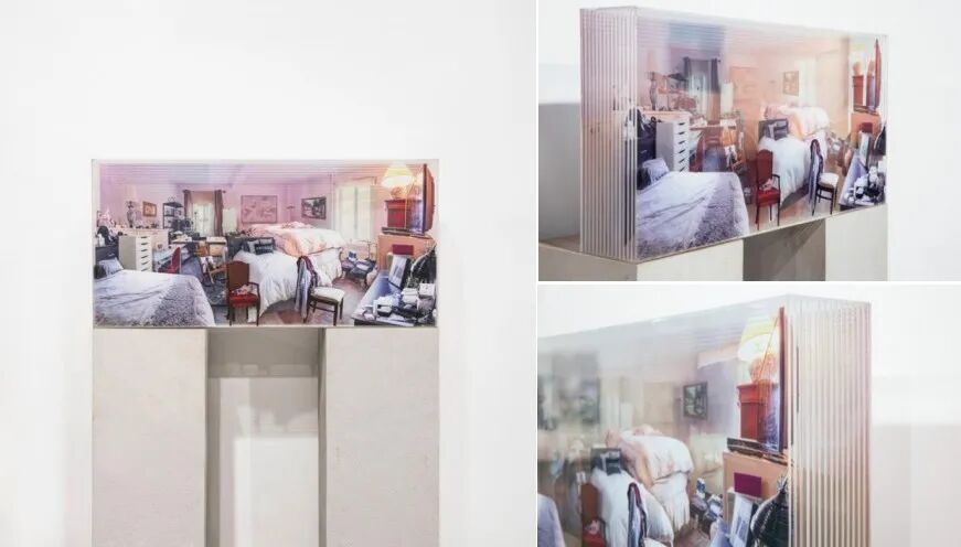 During the outbreak, home has become the space where people spend the longest time. Rooms consists of photo sculptures — multi-layered sheets of acrylic with photographic collages on them — that depict rooms in residential rental buildings in New York City.