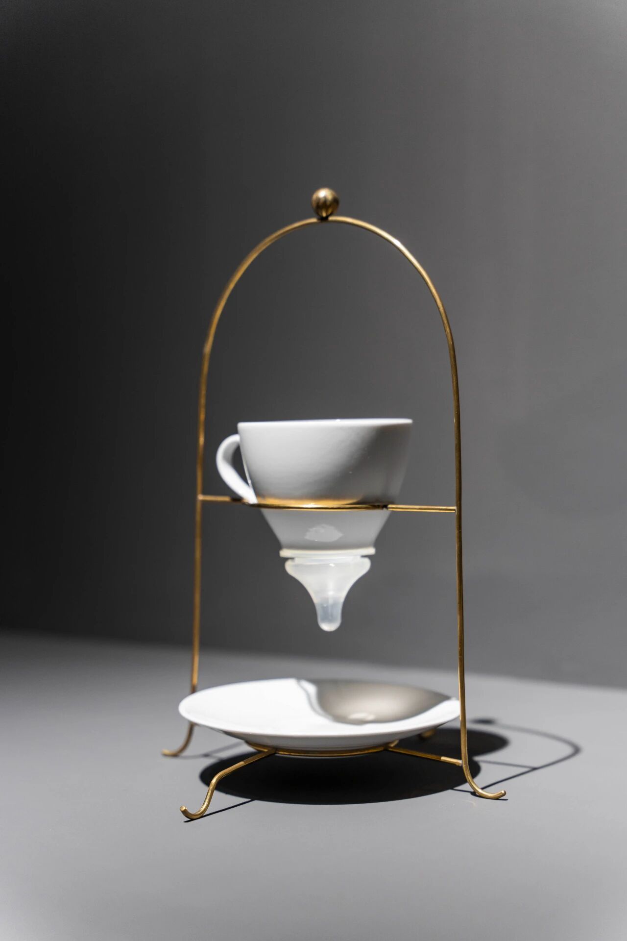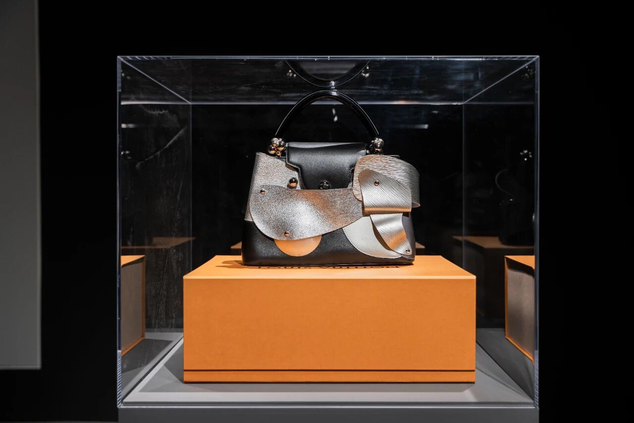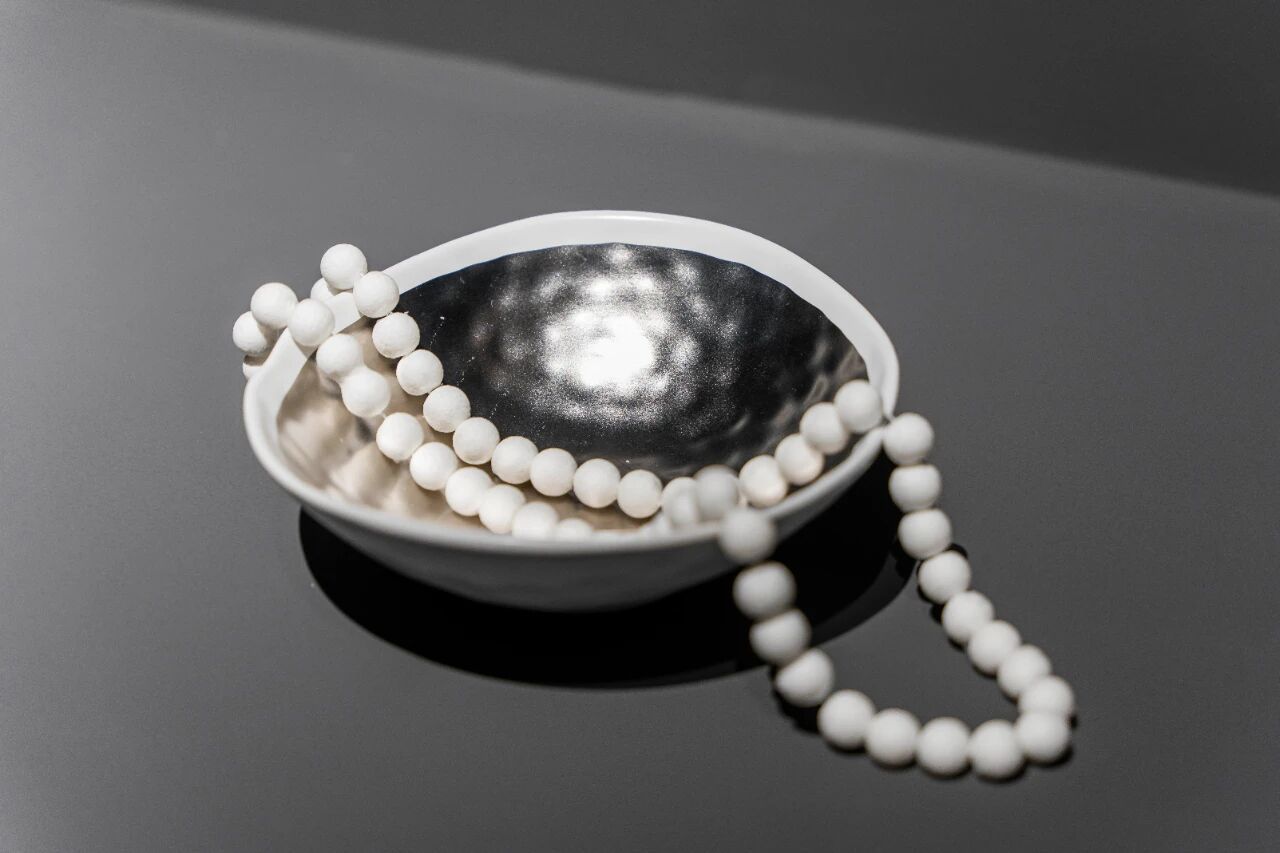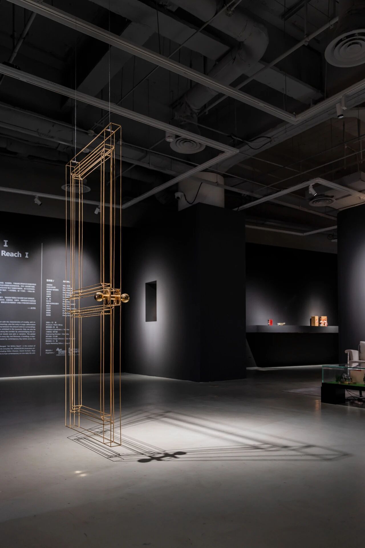 在室内好像有厨房和卫生间,张如怡的“一株—47”仙人掌一样的雕塑,还有啾小组的茅台状洗手液,好似该品牌最近频频越界的艺术预告。刘韡设计的手提包,可以用沪语读成“弄伊不懂”,还有张祎桐的肥皂、项链、蜡烛,王业丰的手机,童义欣更抽象的“一坨”等等。
