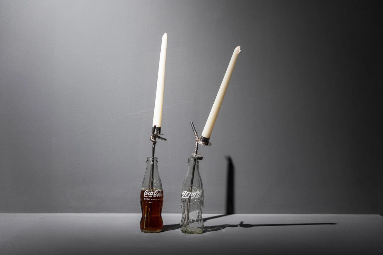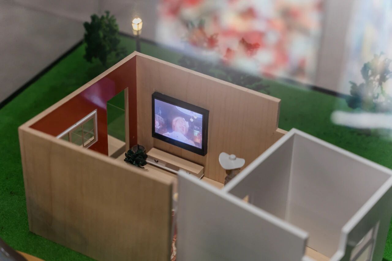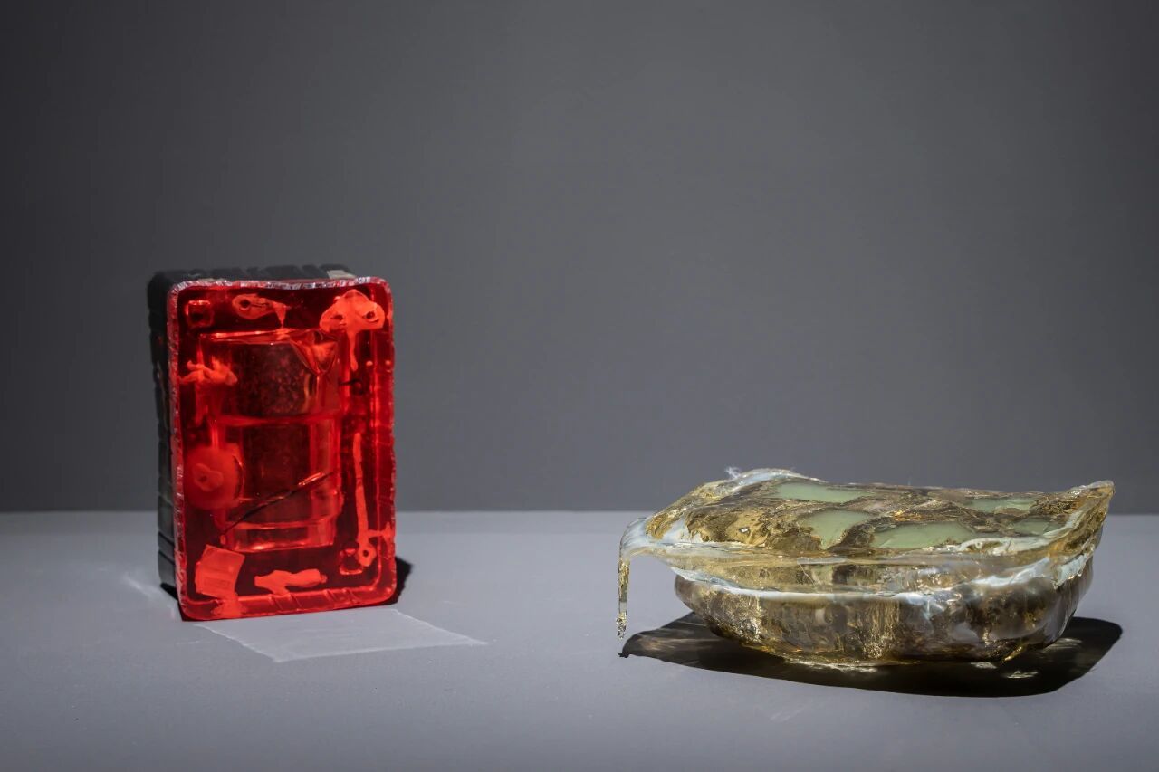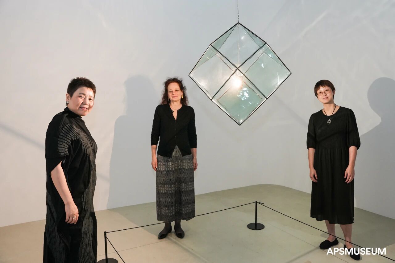 并不一定要在展览厅才能被看见,APSMUSEUM的展品中,椅子上的一盆百合花及其每天固定的阳光照射,一个混凝土浇筑的仙人掌“摆件”,一件在玻璃中混入格陵兰岛冰川岩粉的“吊灯”,两把陶瓷锤子,两只行李箱,一扇悬在空中的门,等等,都是国内外当代艺术家们的杰作。