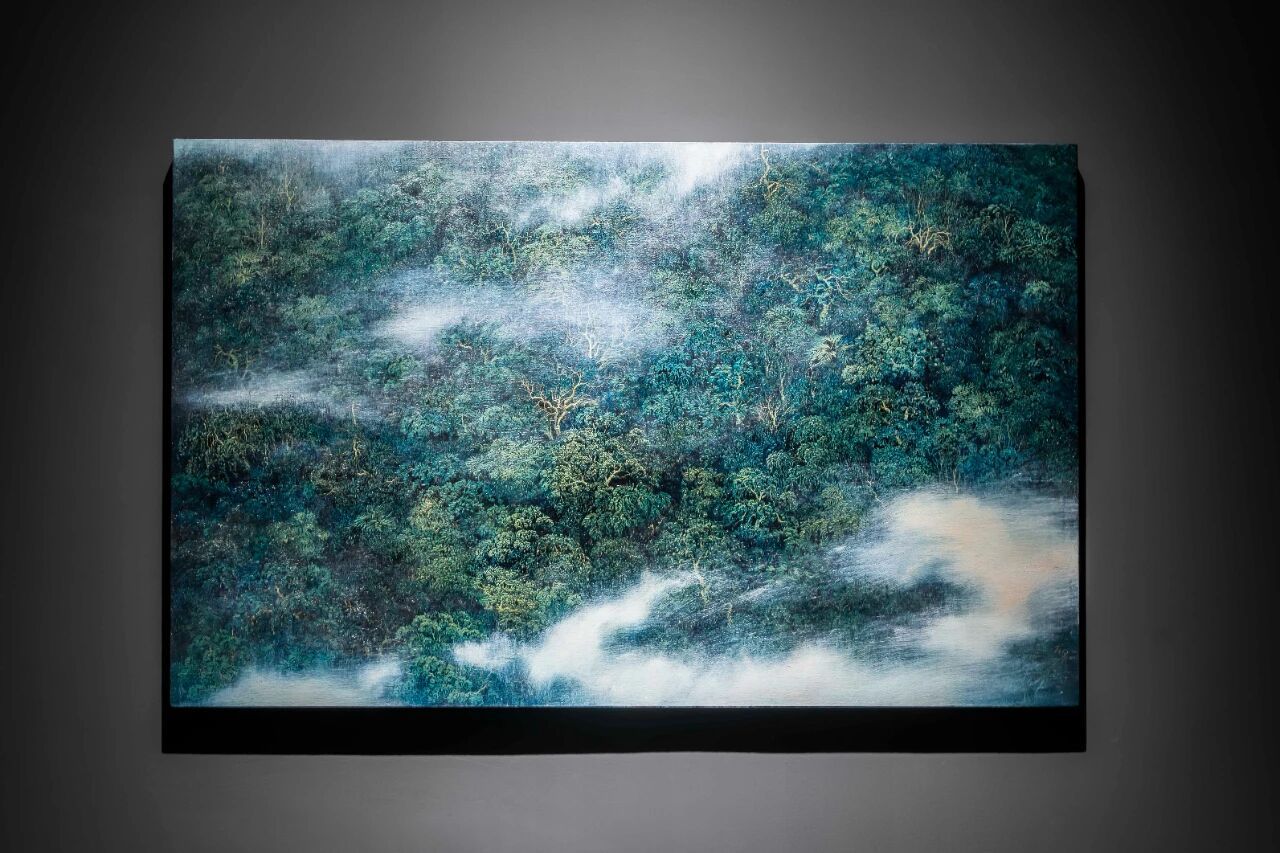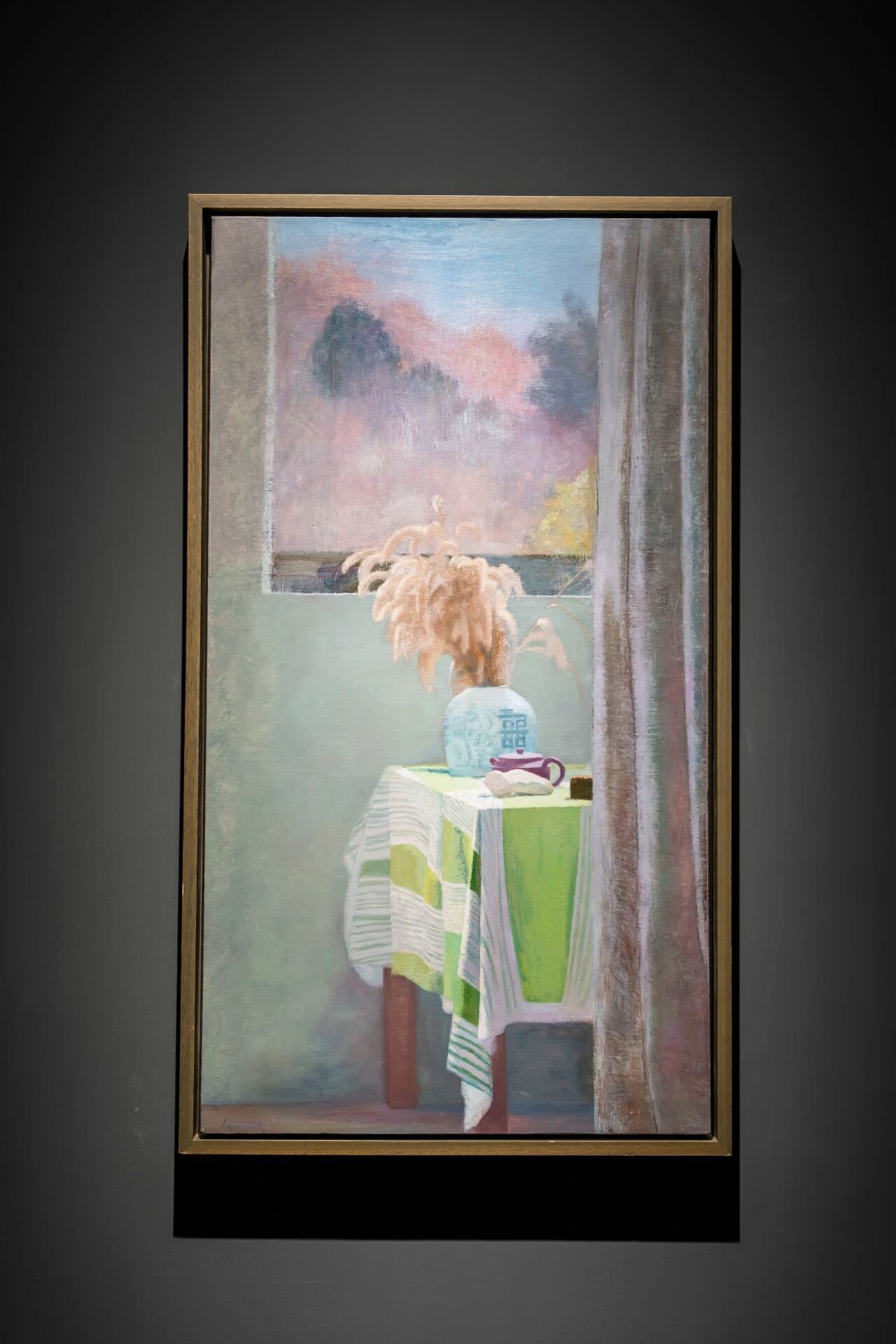 当然有“身边”就有室外,“我心温柔”好似呼应张爱玲的名言:窗台上的花是否比外面的游行集会看起来更大?玛丽·安·斯特兰德尔(Mary Ann Strandell)和刘建华不约而同关心“阶梯”,将室内景象贯通社会结构。奥拉维尔·埃利亚松(Olafur Eliasson)的吊灯式的作品则是本次镇展之作。穿过室内风景,站在窗前,眺望安藤美夜的“云”和吴冠德的“行云”,归根到底,没有“外面”,哪来“身边”?